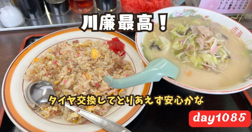 こんばんは。 とりあえず前二本のタイヤを変えその後久しぶりの川廉を。 とりあえずタイヤ変えて安心かな。とはいっても後ろもやばいから早めに変えないとだな。 ちゃんぽん&焼き飯の黄金コンビ。 うまかったー。 ちょこちょこ食べられるようになりた... -