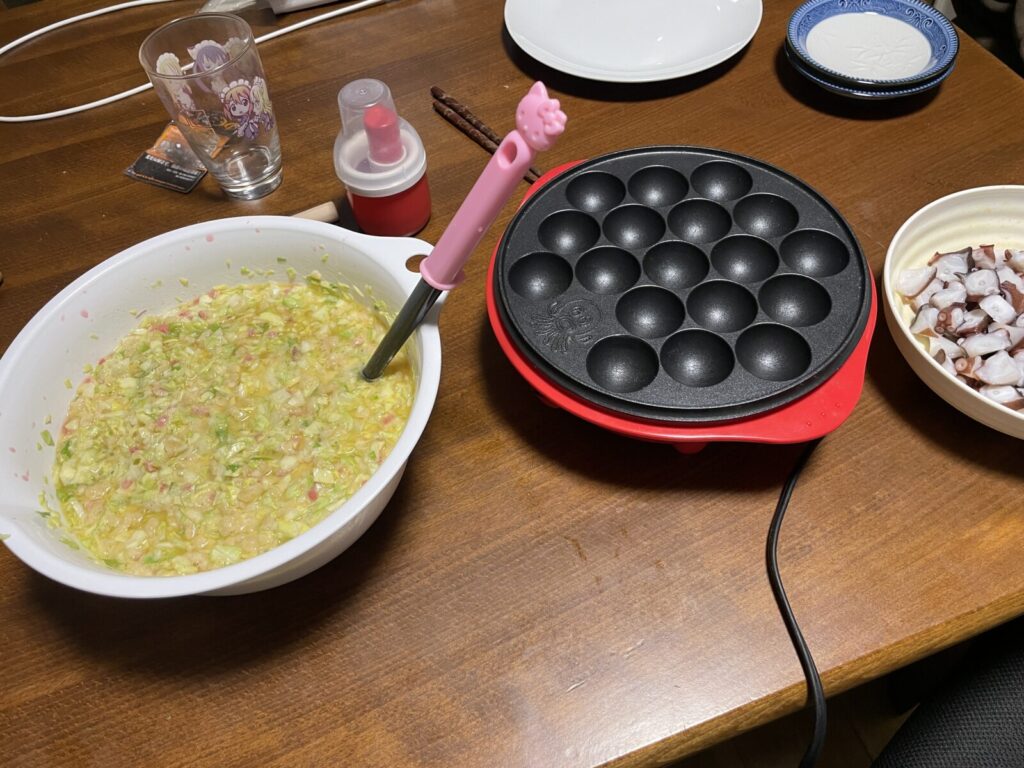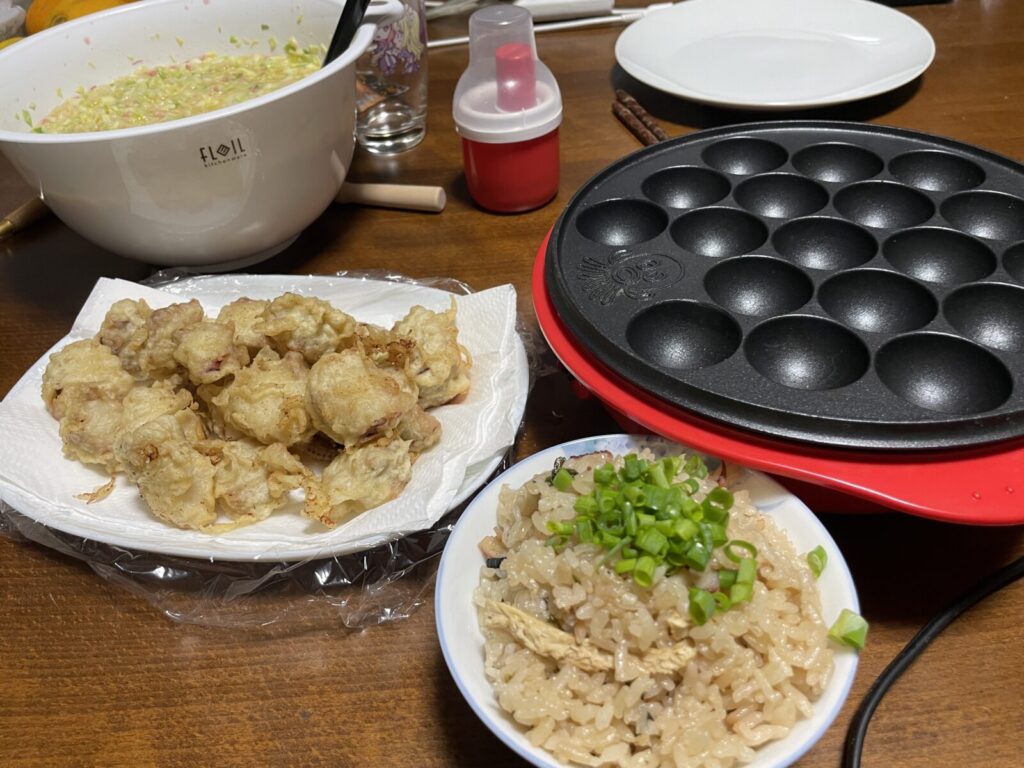 今日のメインはタコ飯じゃなくてたこ焼きだよ。