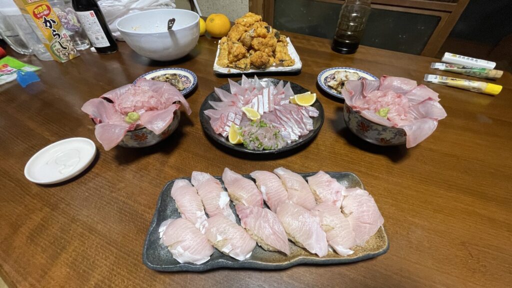夕方はミヤさんがヒラマサを釣って来てくれました!