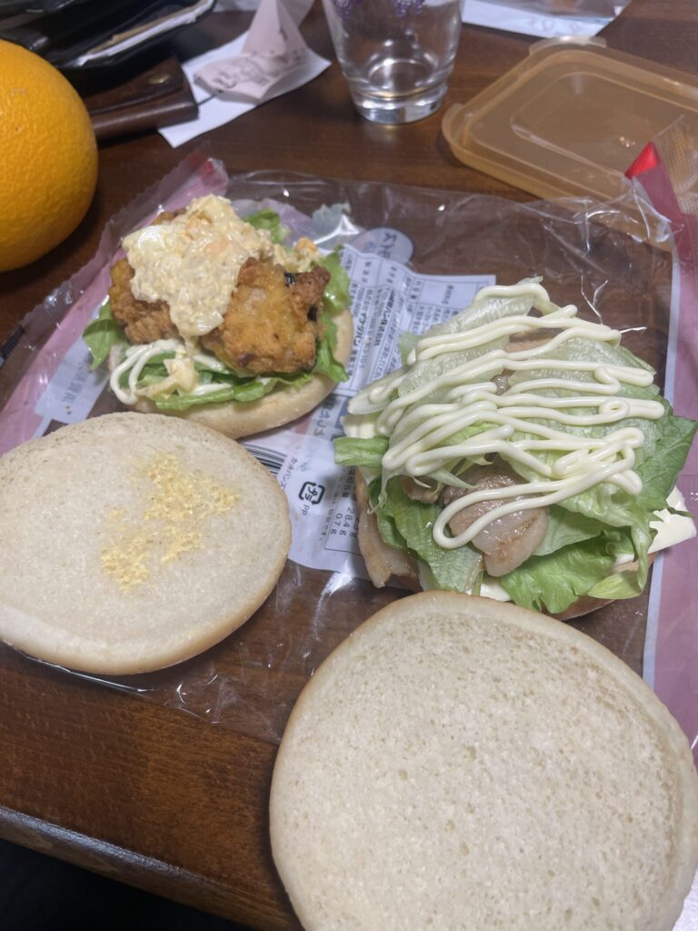 今日もタルタルフィッシュバーガーに生姜焼きバーガー。