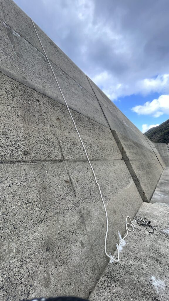 高い堤防にロープ下がってた。