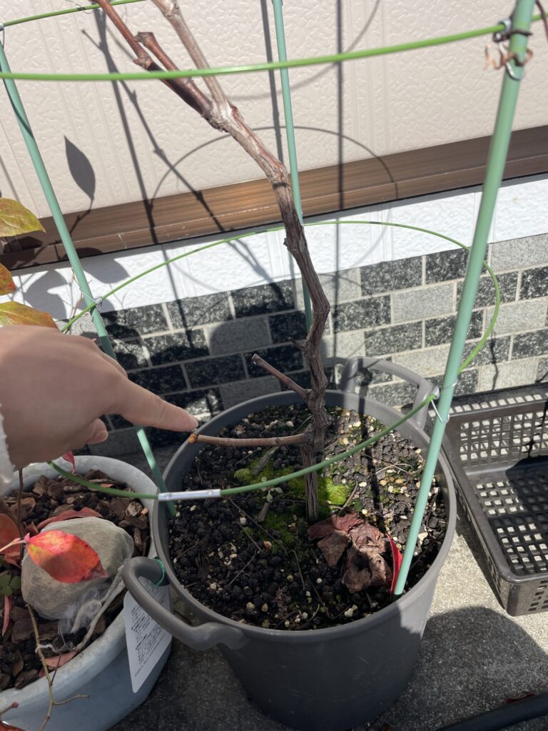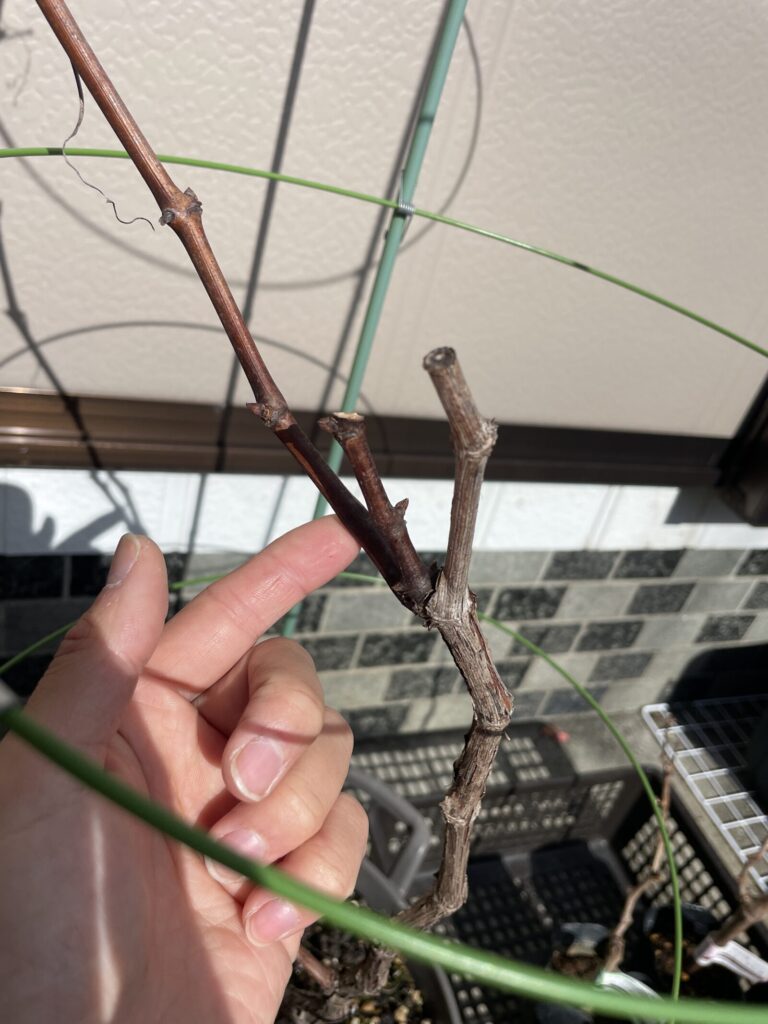 この長いのを根本から何個の芽を残して切るか。みたいだよ。