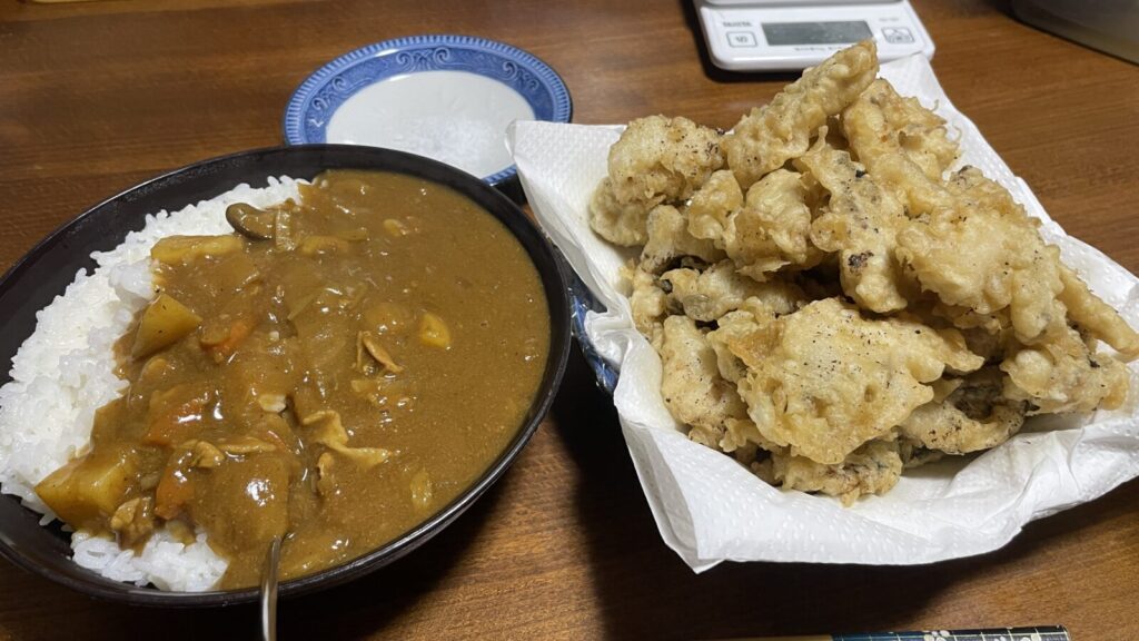カレーと天ぷらにしました。