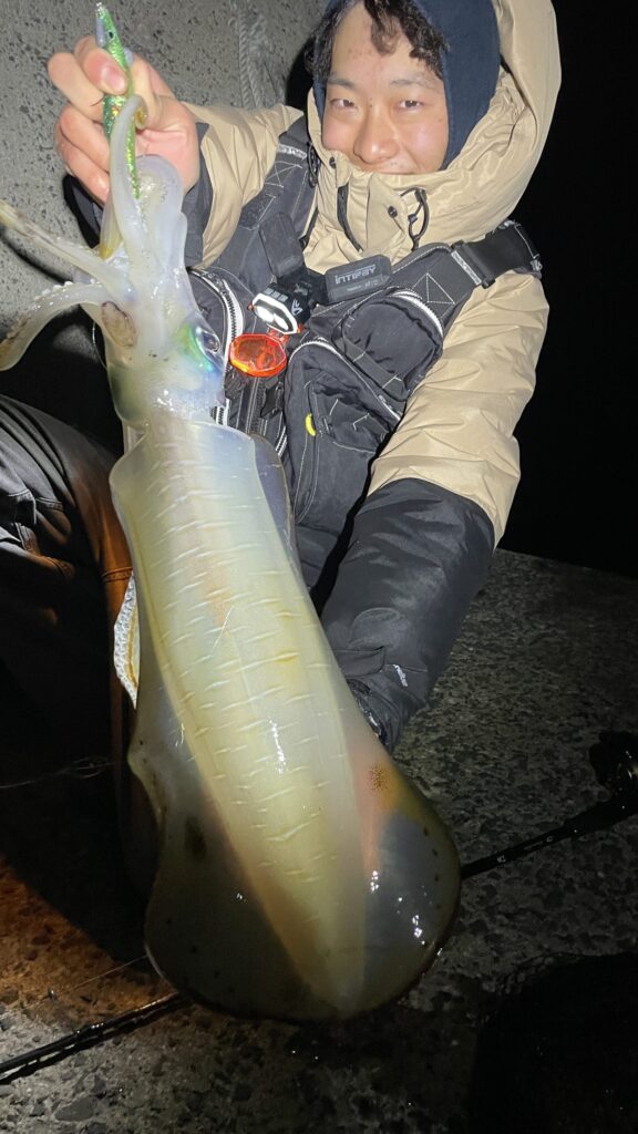 ここでしょうまくんの竿がかなり曲がって上がって来たのはなんと2キロ超え。