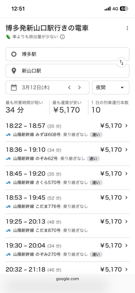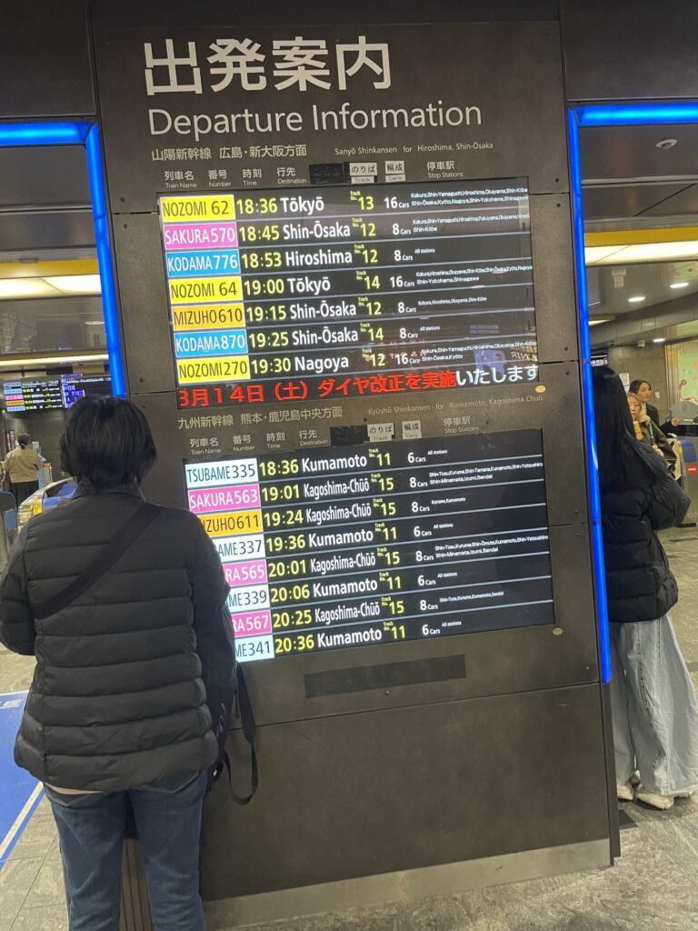 船の中では時間がたくさんあるので新幹線の時間を確認しておく。