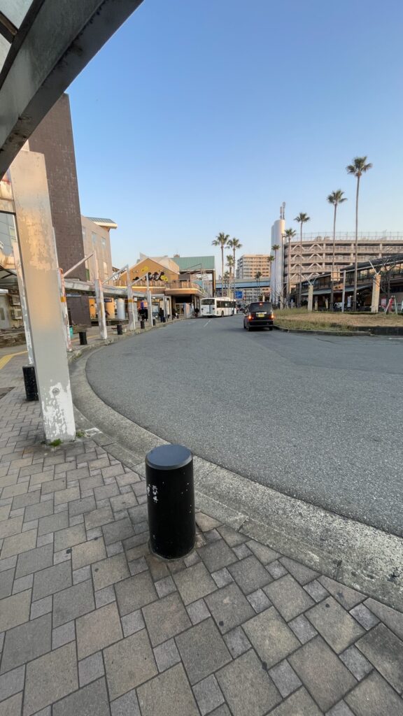 ここからバスに乗って博多駅へ向かいます。