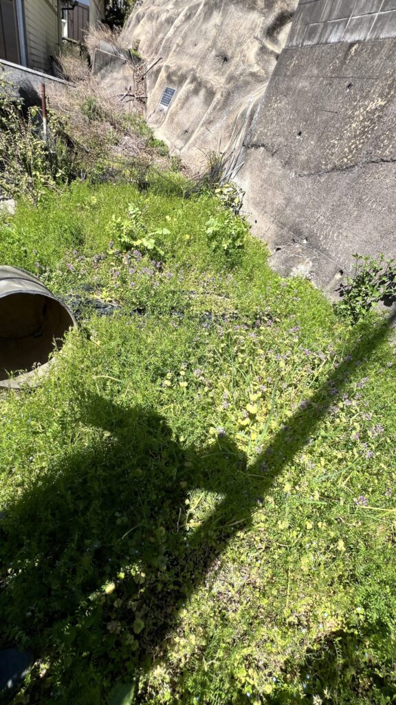 今日はこの雑草地帯を綺麗にしていきます。毎回春の一大行事だな。
