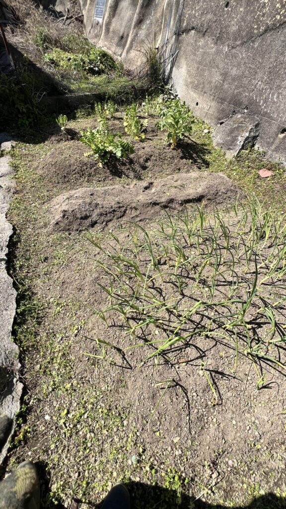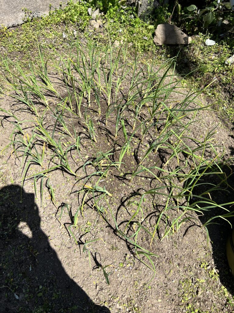 ていねいに雑草をとって玉ねぎが顔を出したよ。