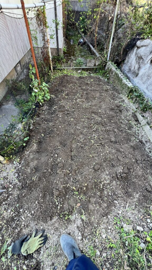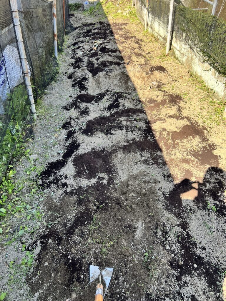 さてこれでおわりじゃなくてこのあとは牛糞と苦土石灰を撒いてそのあと耕していくよ。