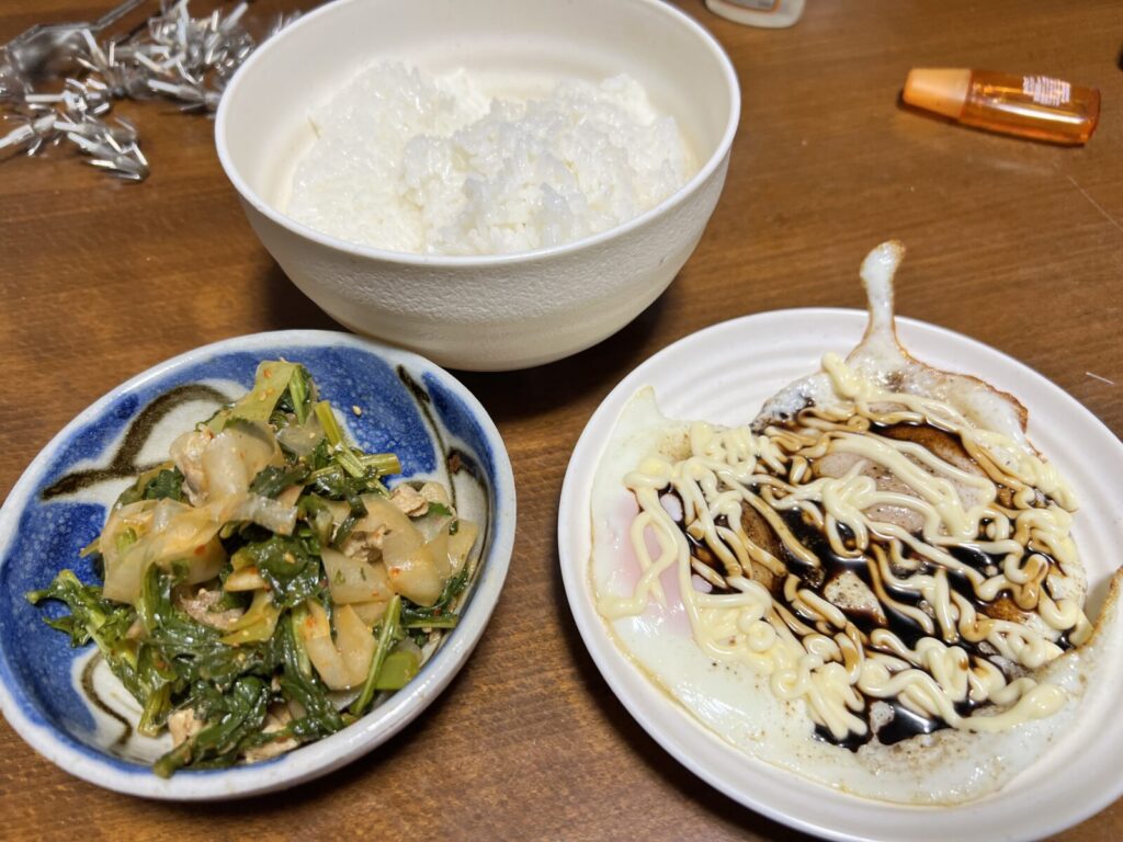 大根の葉っぱ炒めと目玉焼き。