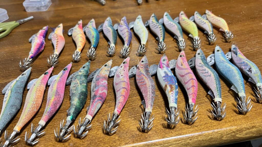 昨日の夕方から朝までずっとエギの針外して合う針探して接着剤入れてをやってました。