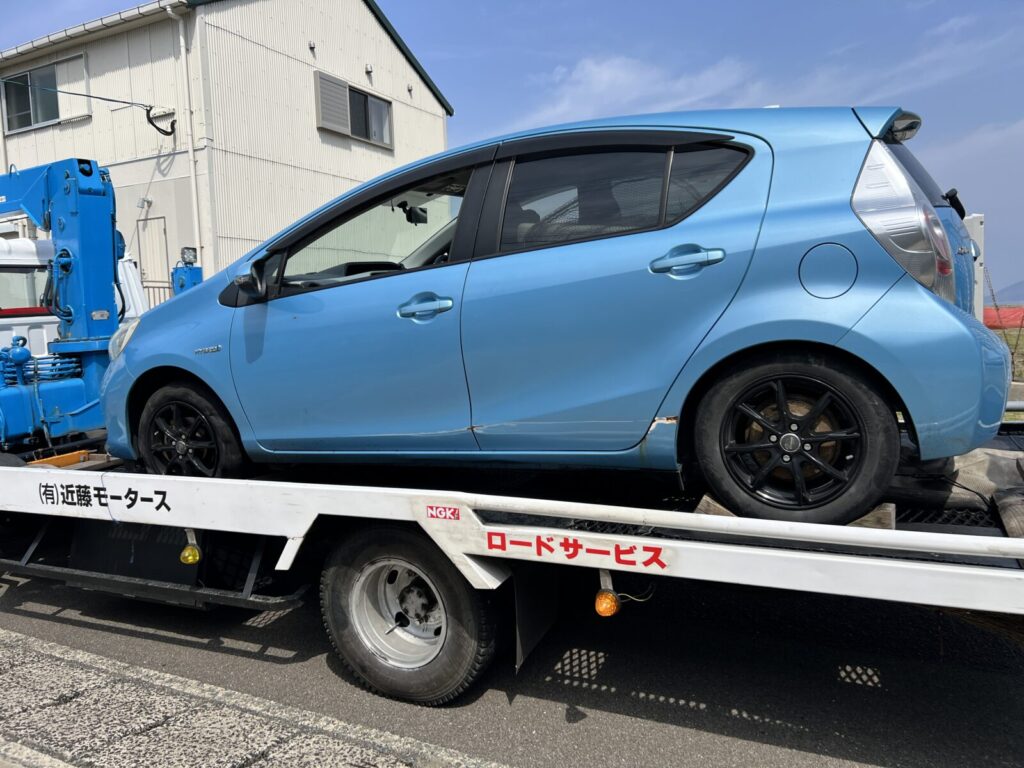 とりあえずタイヤ変えないといけないのでレッカーをお願いして行きつけの整備工場へ運んでもらいました。