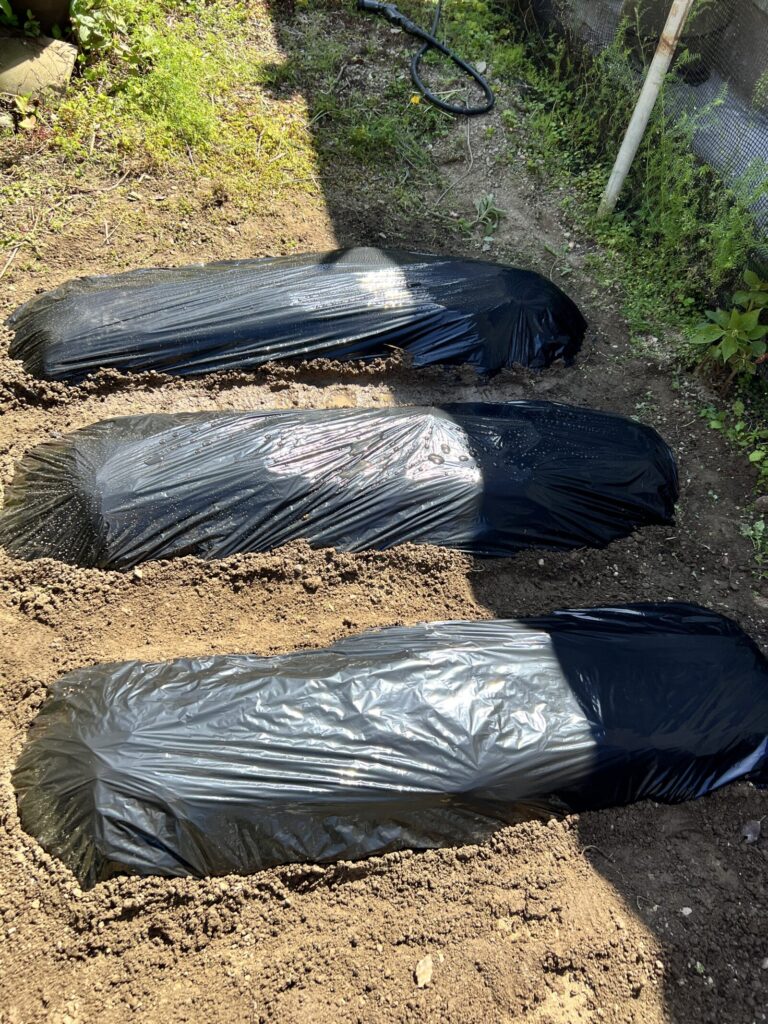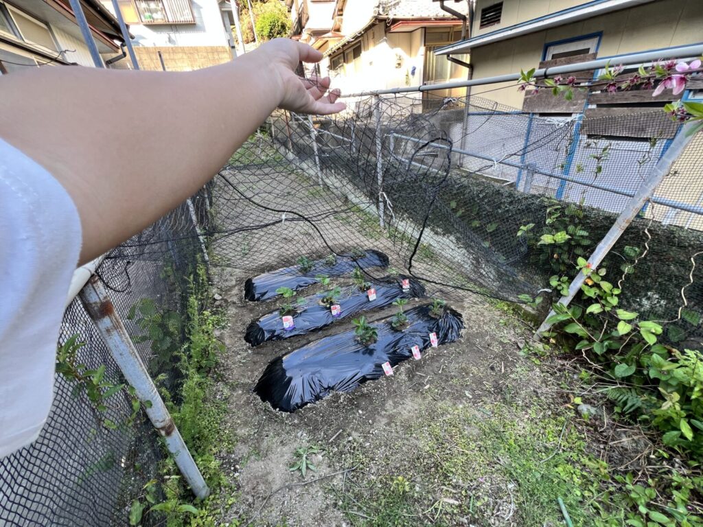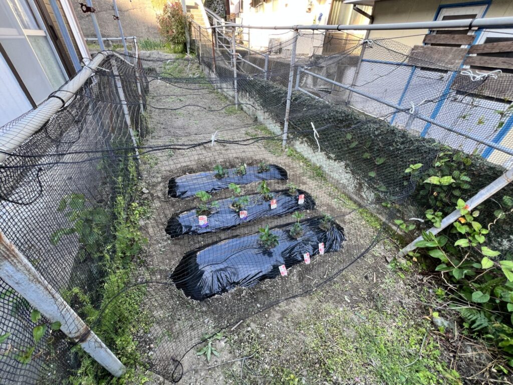 あと、植え付けした後にカラス対策のネットを張ったよ。