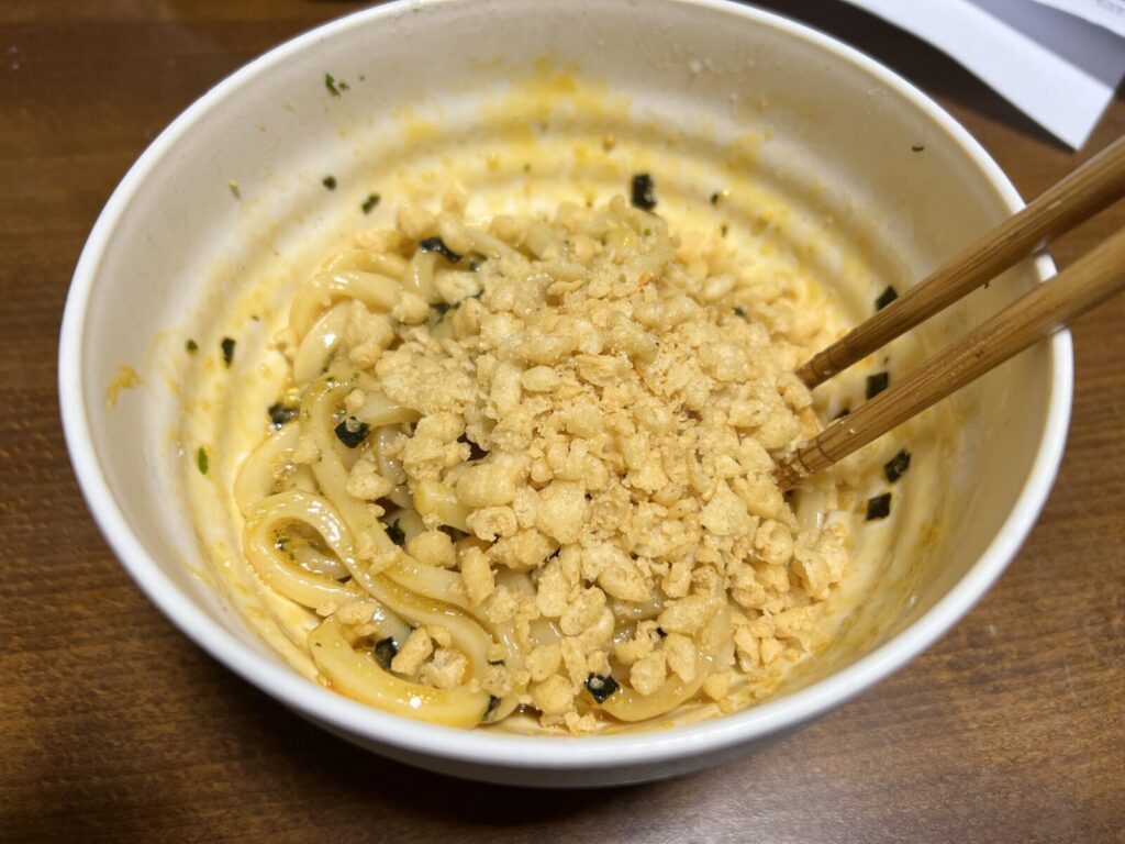夜ご飯は釜玉うどん。