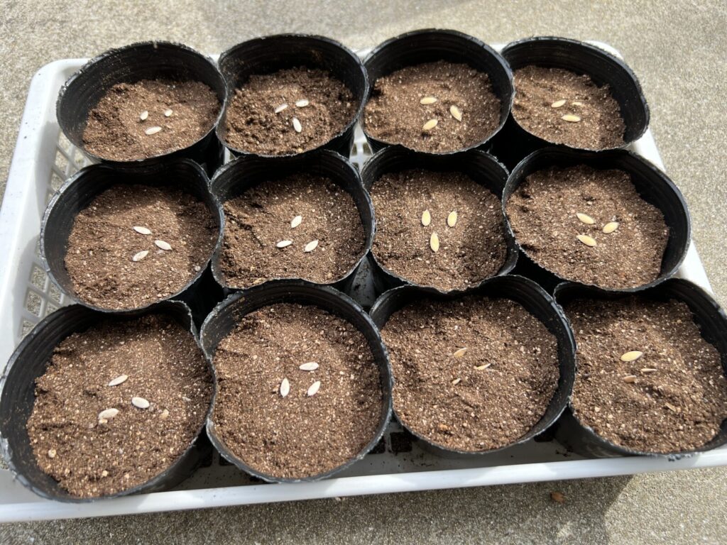 あとは去年食べたメロンの種を取っておいたのでこちらも蒔いてみる。