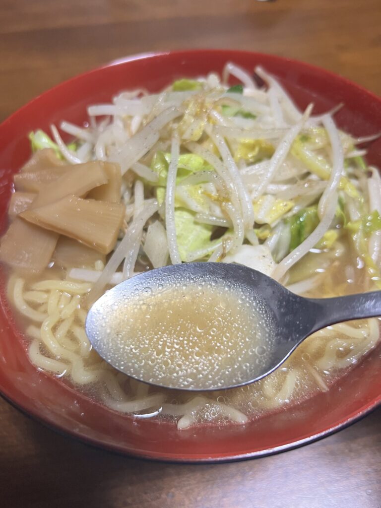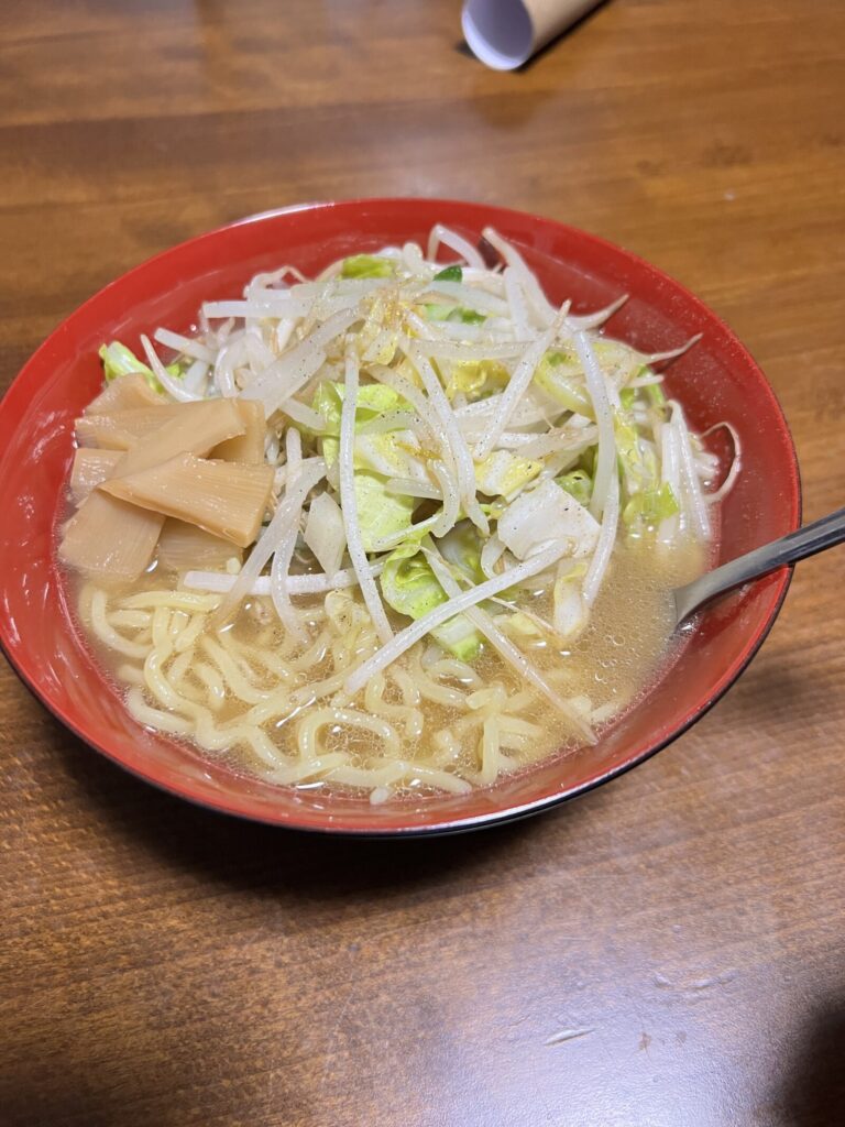 今日もラーメン。今日はしょうゆと塩胡椒を追加して味と香りを強化。