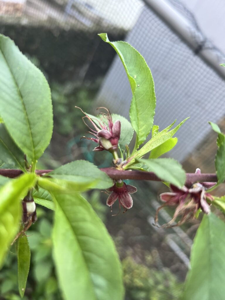見にくいけど桃の実がついたよ。