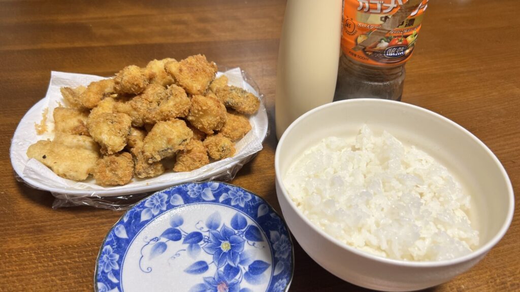 夜ご飯は天ぷらの残りとフライ。