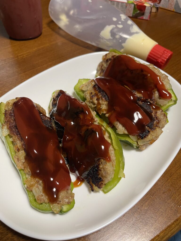 さて、今日は自家製ピーマンを使って肉詰めを作ります。