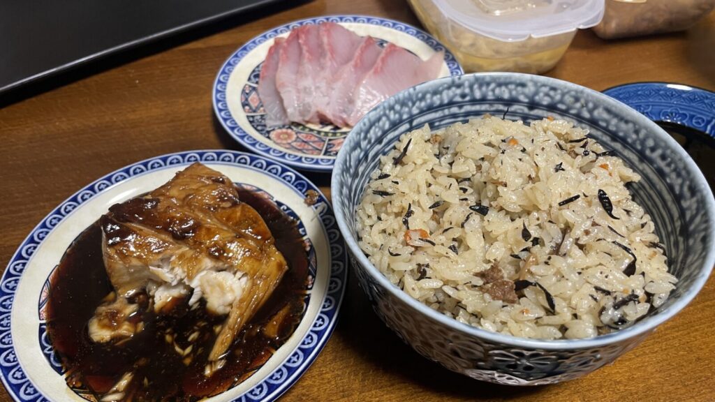 ヒラマサの照り焼きもうまいわあ。
