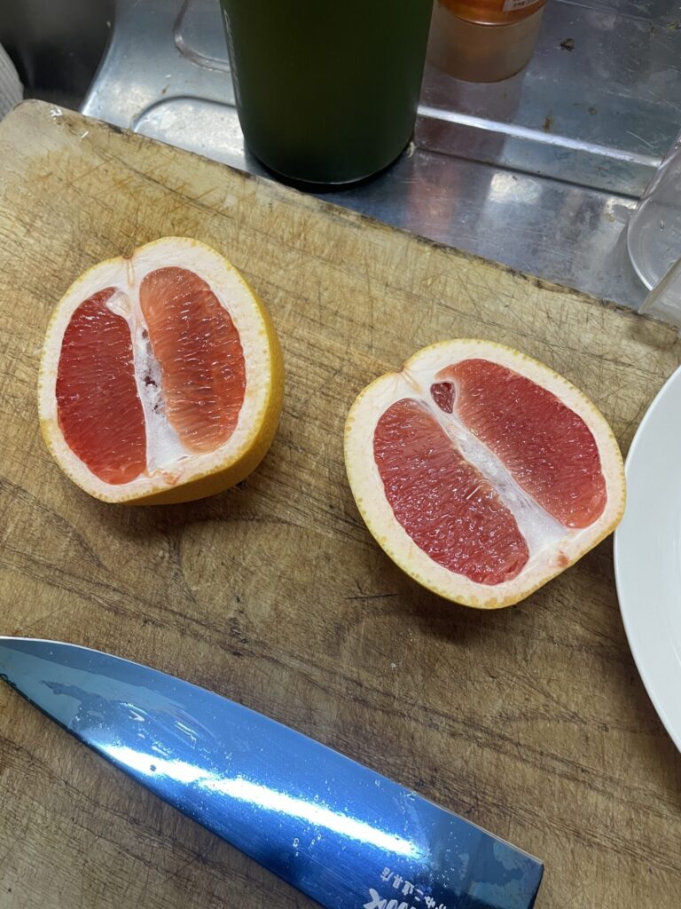 レモンのような黄色のもの、今回のような赤い色のやつ、さらに皮も少し赤みがかったものがあるみたいで赤くなるにつれて甘くなって行くんだって。