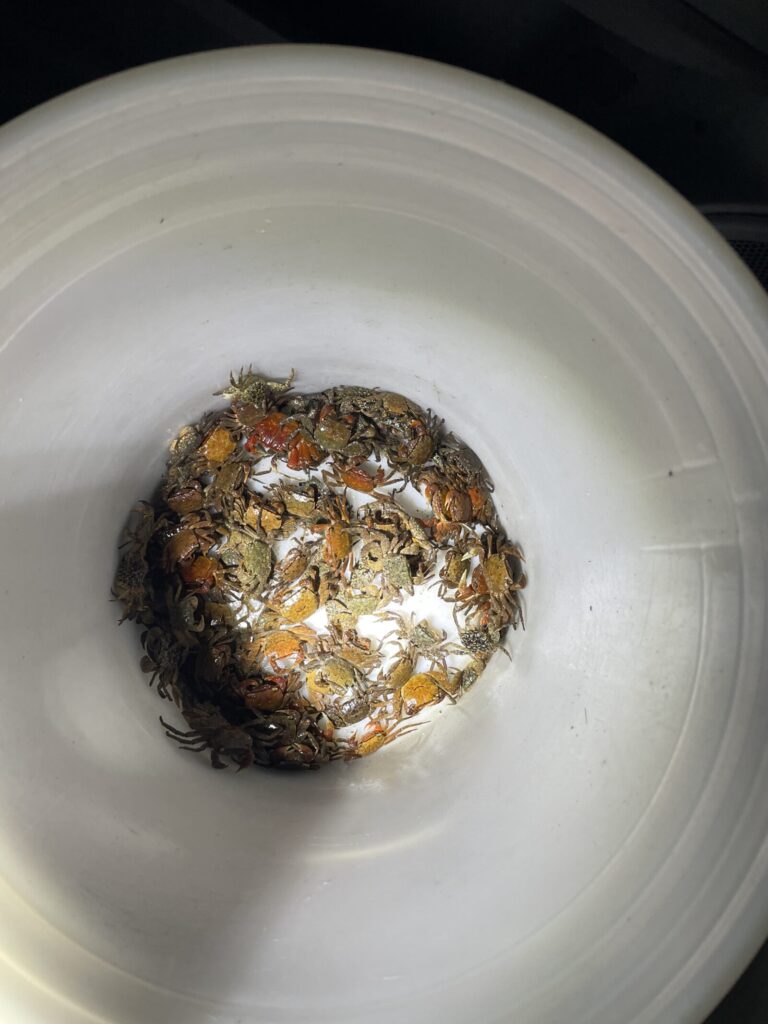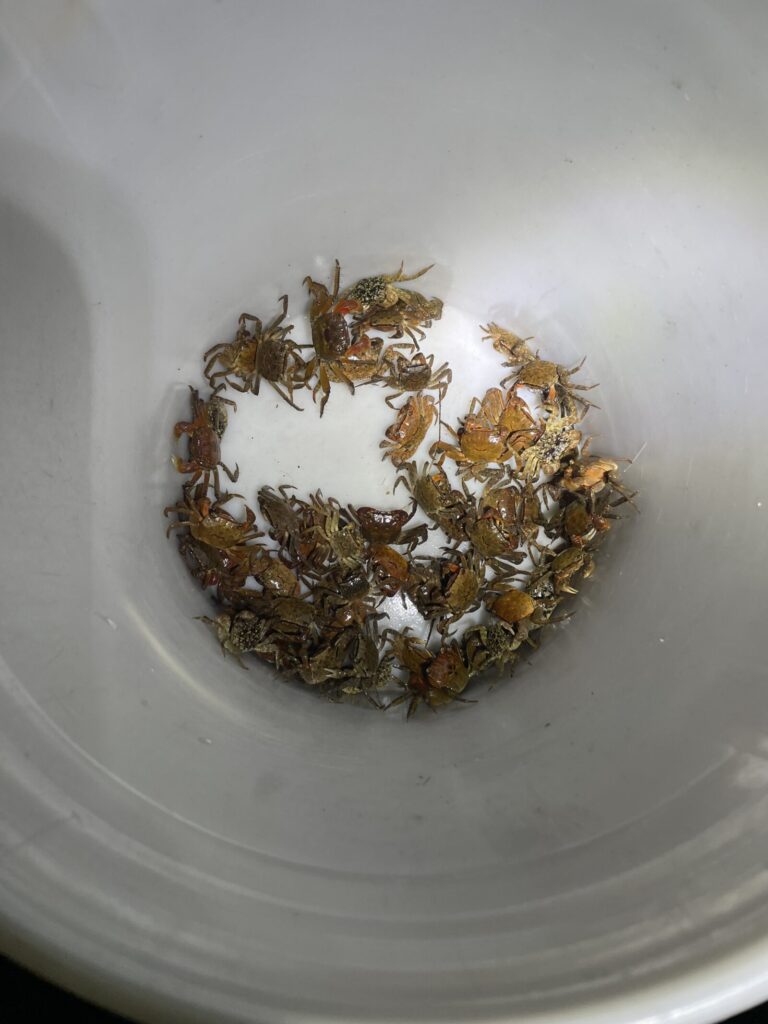 アジの後はカニ集め。