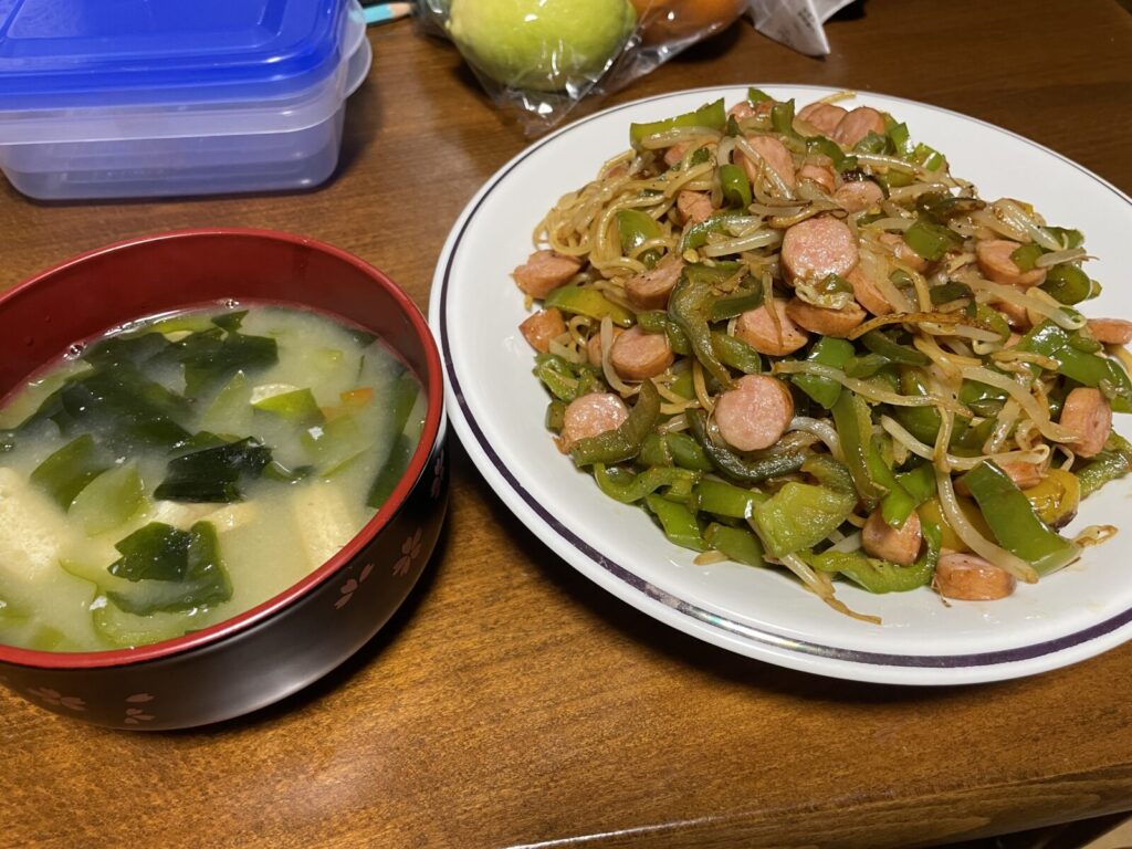 今日はピーマンたっぷりの焼きそばとピーマンたっぷり味噌汁をいただきました。