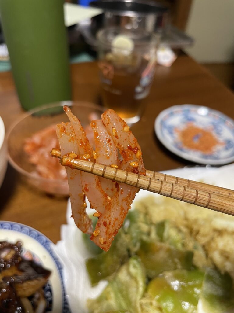 夜はハヤケンさんにいただいたイカニモキムチをいただいてみました。