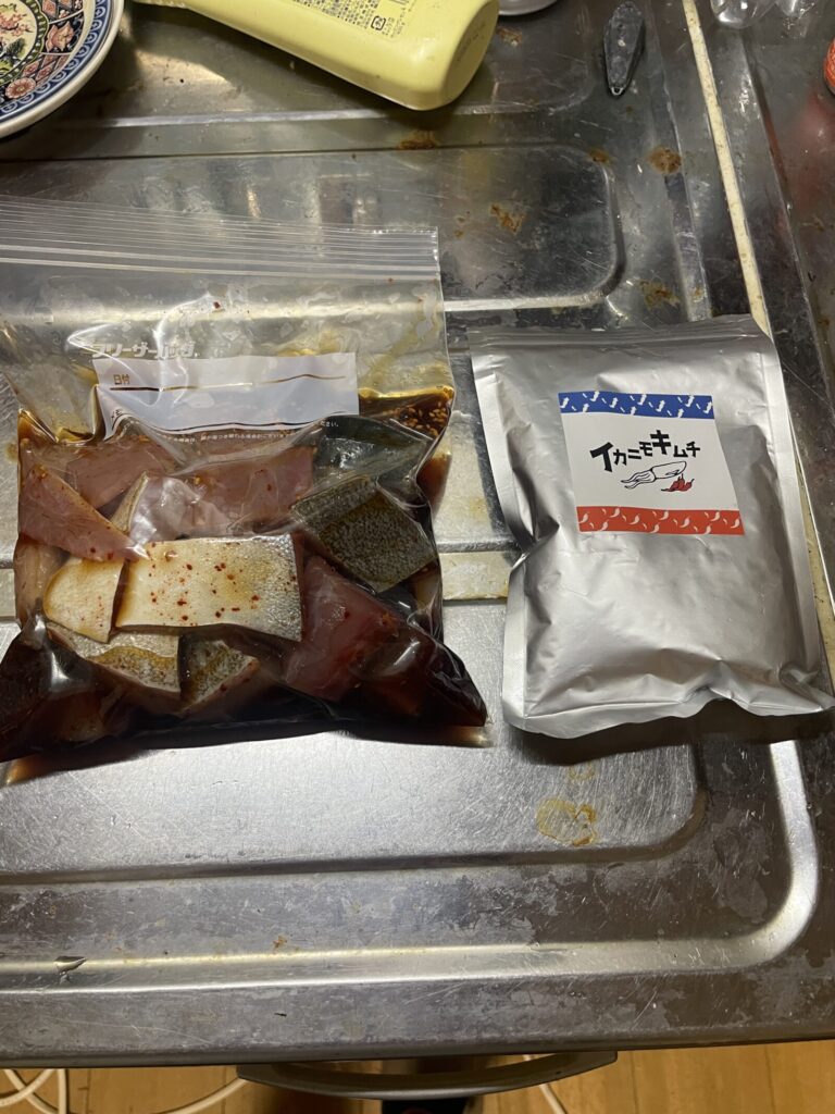 醤油ベースのタレにイカニモキムチも混ぜてみる。