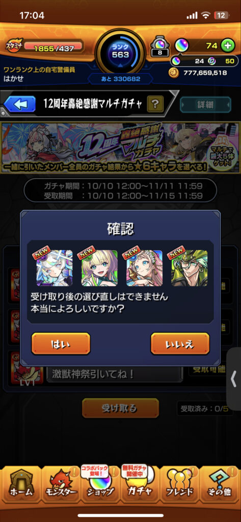 マルチガチャっていって他の人が引いたガチャ結果の中から好きなキャラを選択できるらしい。