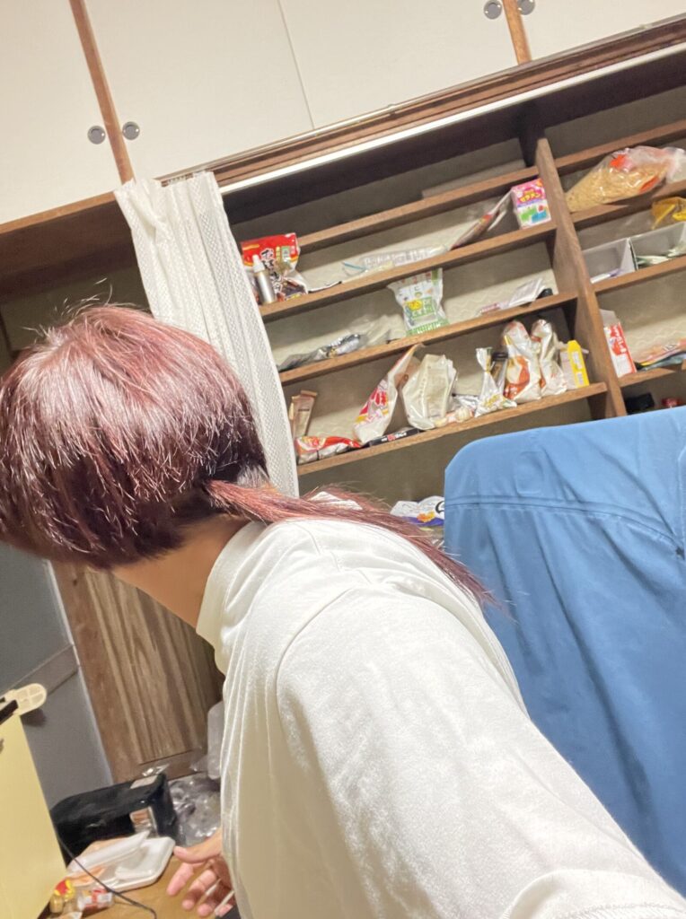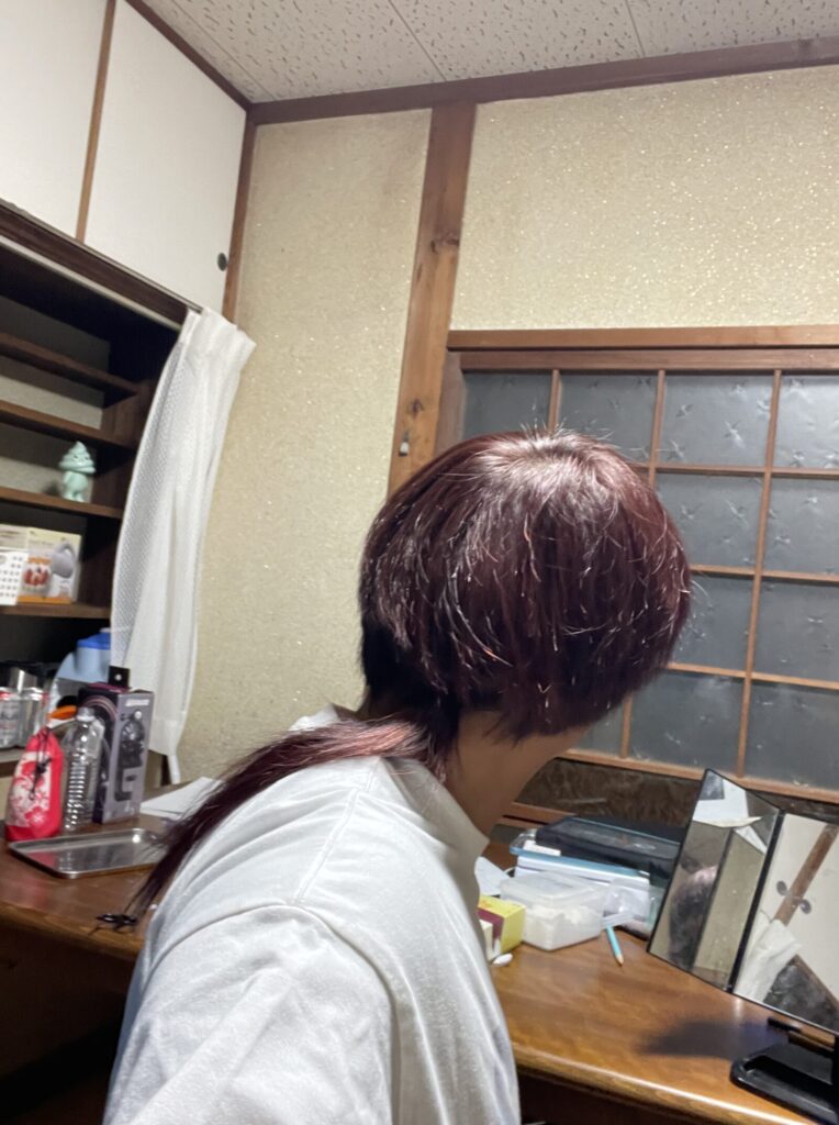 【10/28(火)】カット&色染め。五島移住932日目 2025 12/06 毎日の日記 2025年12月6日 2025年12月6日 こんにちは。 今日は髪を染めてみました。 赤紫系統。 色落ちして金髪ちっくになってたからいい感じに染まったな。 後ろを縛る最近のアニメのキャラによくみられる髪型。 結構気に入ってる。 次はどんな髪型にしよっかな。 今日はこの辺で、じゃあの。 毎日の日記 よかったらシェアしてね! URLをコピーしました! URLをコピーしました! 【10/27(月)】また今日もパン焼いた。五島移住931日目 【10/29(水)】芋掘ってみた。今年もいい感じやね。五島移住933日目 この記事を書いた人 nakase 関連記事 【10/29(水)】芋掘ってみた。今年もいい感じやね。五島移住933日目 2025年12月6日 【10/27(月)】また今日もパン焼いた。五島移住931日目 2025年11月27日 【10/26(日)】パン1日で2回も作っちゃった。五島移住930日目 2025年11月27日 【10/25(土)】牛糞堆肥会に行っただけなのにどうしてこうなった。五島移住929日目 2025年11月27日 【10/24(金)】色々きたよ!五島移住928日目 2025年11月26日 【10/23(木)】今日は何もない。五島移住927日目 2025年11月26日 【10/22(水)】プチ磯でネリゴ釣り。夜はご馳走が最高!五島移住926日目 2025年11月26日 【10/21(火)】爆風エギング!からの麻婆春雨がうますぎた。五島移住925日目 2025年11月26日 コメント コメントする コメントをキャンセルコメント ※ 名前 ※ メール ※ サイト 次回のコメントで使用するためブラウザーに自分の名前、メールアドレス、サイトを保存する。 CAPTCHA コード