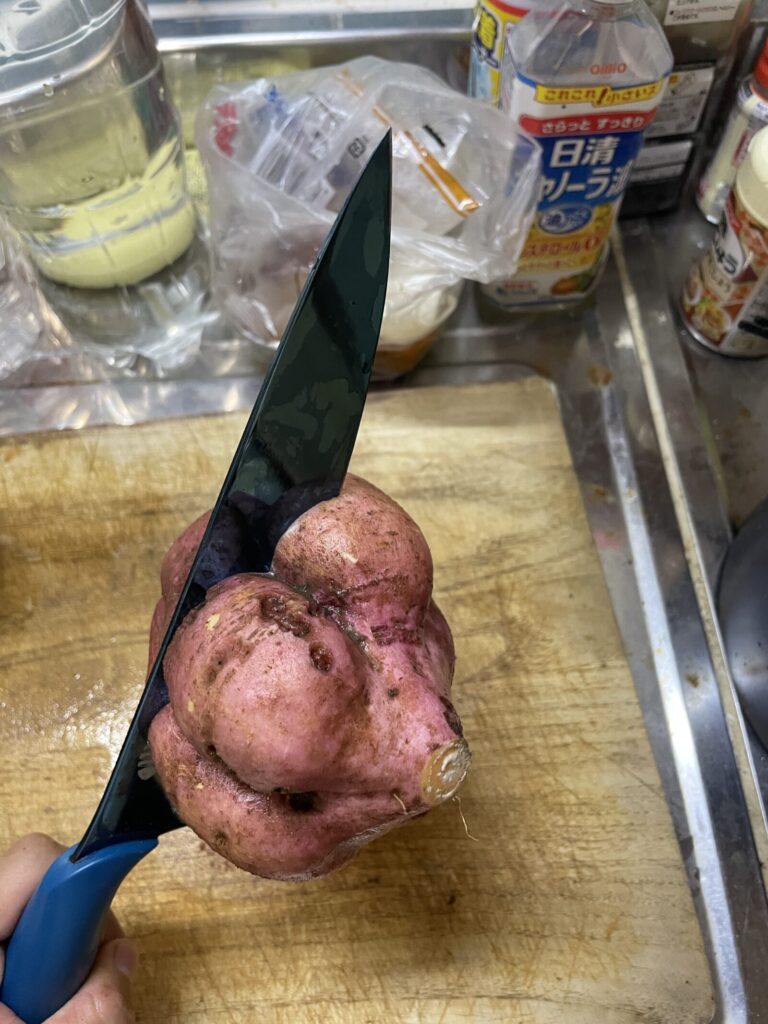 太過ぎて包丁止まって抜けなくなった。