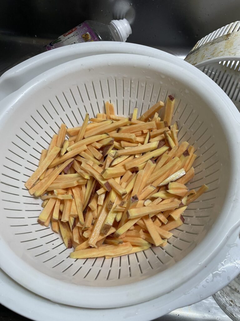 芋をカットして水にさらして