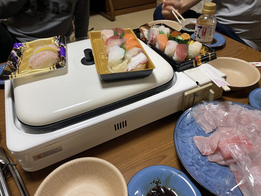 Tさんがお寿司を買ってきてくれた。