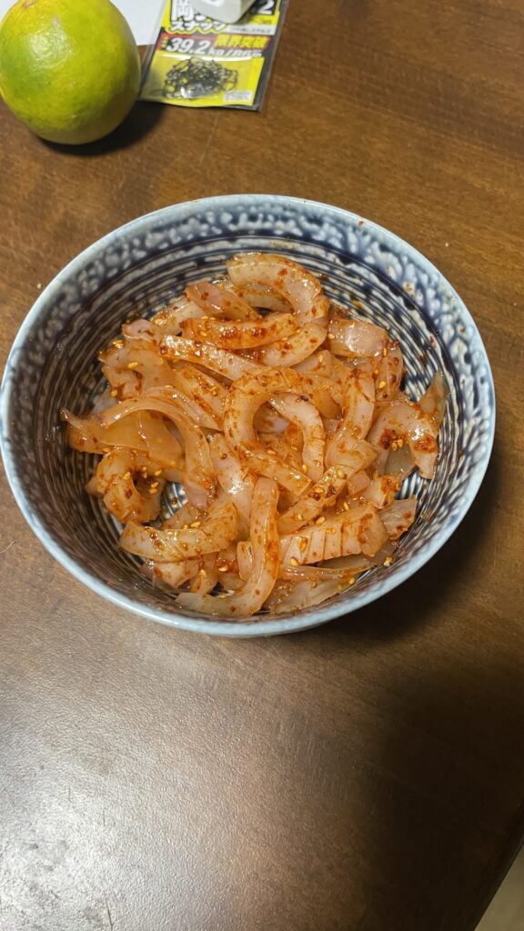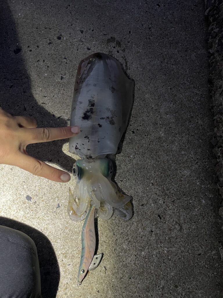 でもアジはいなくてなんとか1匹イカが釣れました。