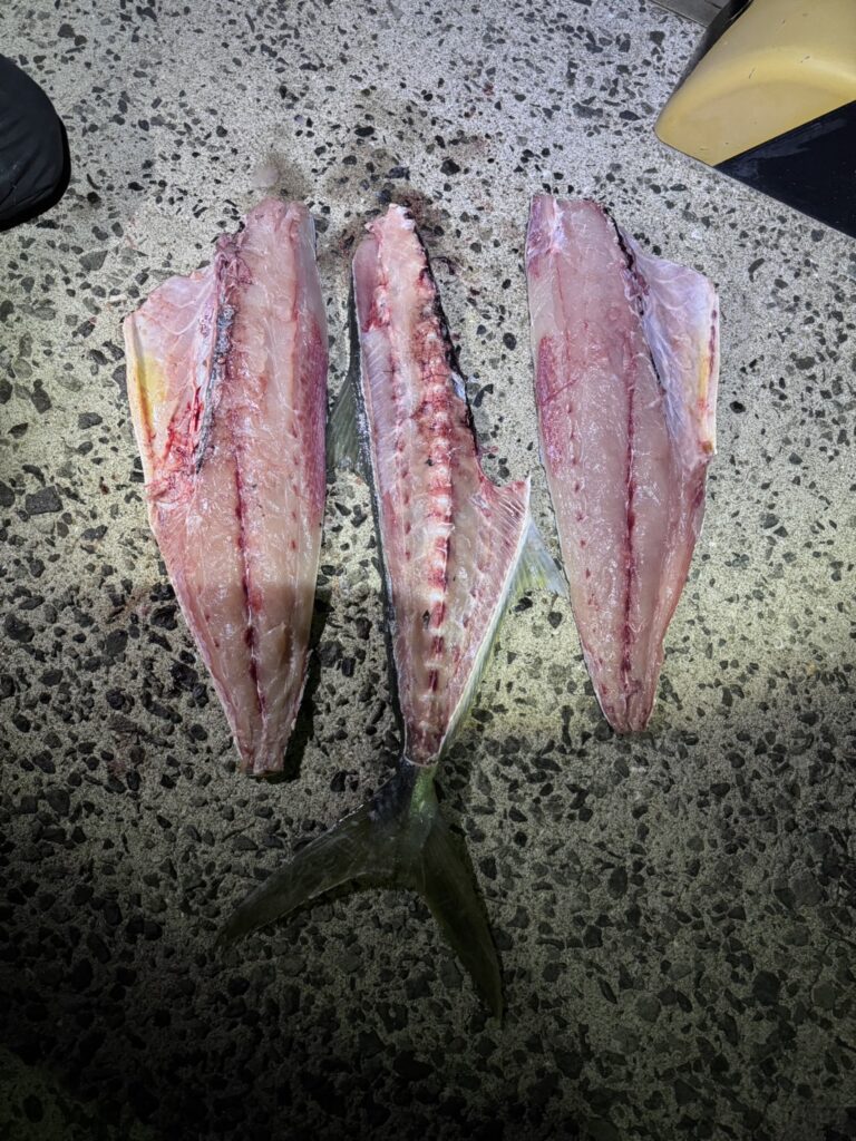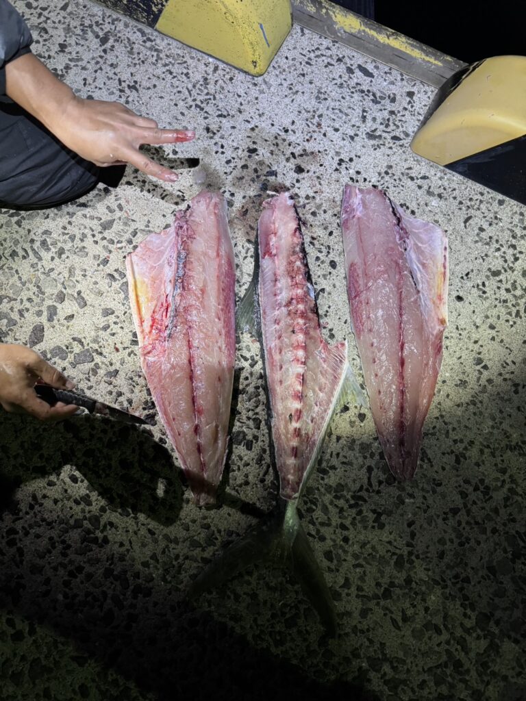 しっかり血抜きもしてくれてたので全く血がでなかった。それにアジ用のナイフでも意外と綺麗に捌けて感動。