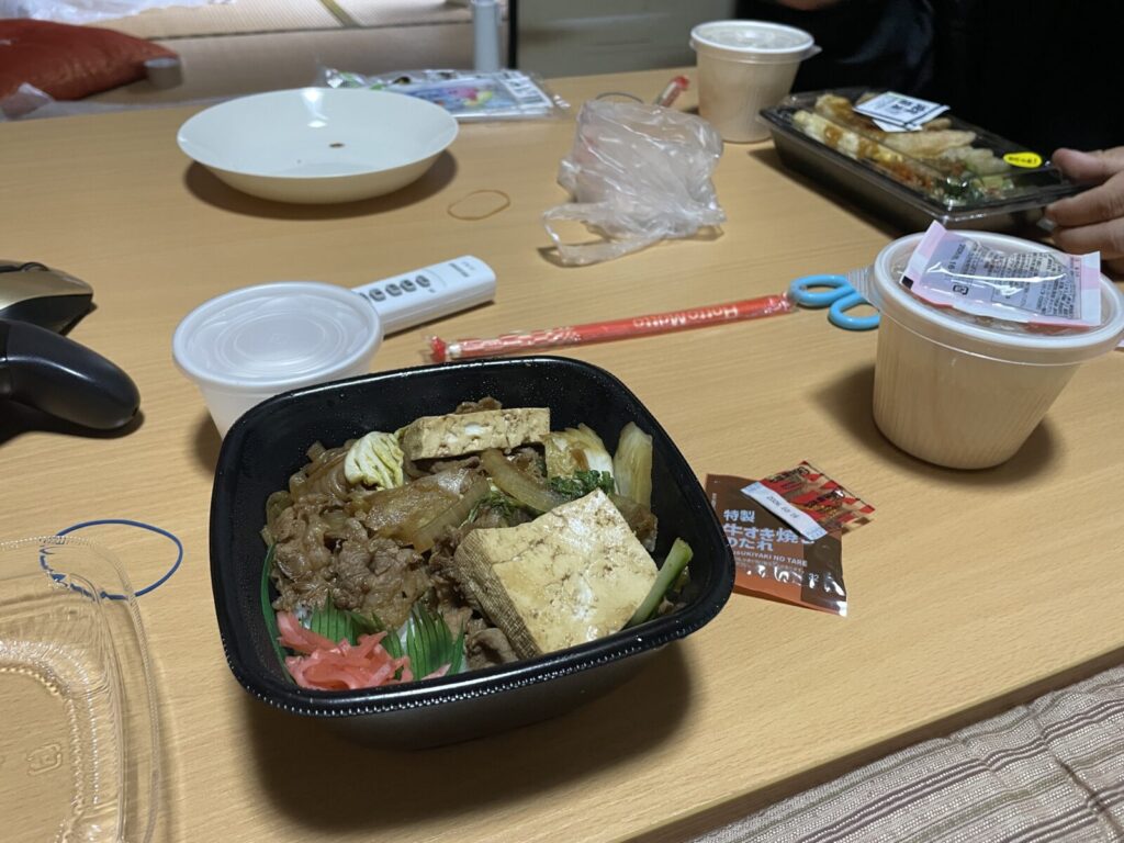 すき焼き丼をご馳走になってます。