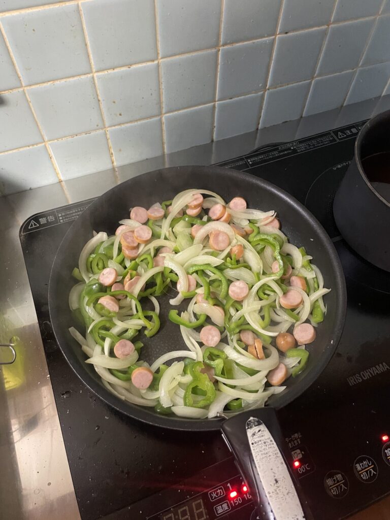玉ねぎ、ウインナーと一緒に炒めると