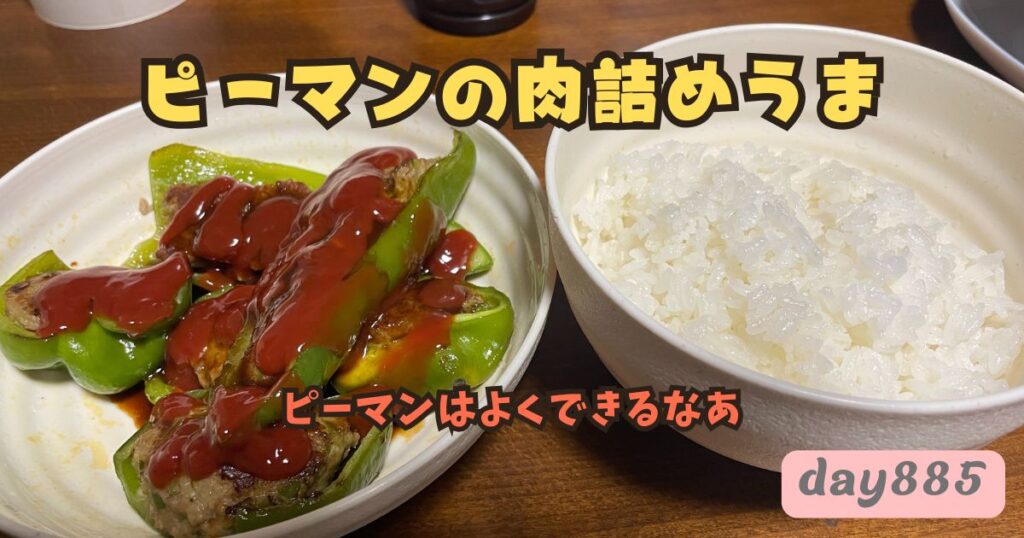 こんにちは。 今日はピーマンがたくさん取れました。 毎年ピーマンはよくできるなあ。 三本植えておけばピーマンには困らないね。 ナスがもうちょい欲しくなるなあ。 ごちそうさまでした。 タネにもピーマンを混ぜ込んでいる贅沢な肉詰めでした。 ピーマン... -